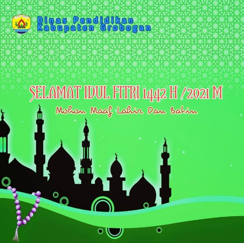 Hari Raya Idul Fitri 1 Syawal 1442 H, jatuh pada hari Kamis tanggal 13 Mei 2021, hari raya tahun ini bersamaan dengan Hari besar umat Kristen yaitu Hari Raya Kenaikan Isa Al-Masih. Segenap karyawan dan karyawati Dinas Pendidikan Kabupaten Grobogan mengucapkan, SELAMAT HARI RAYA IDUL FITRI 1 SYAWAL 1442 H bagi umat Muslim yang merayakannya dan SELAMAT MEMPERINGATI HARI KENAIKAN ISA ALMASIH bagi umat Kristen yang merayakannya.