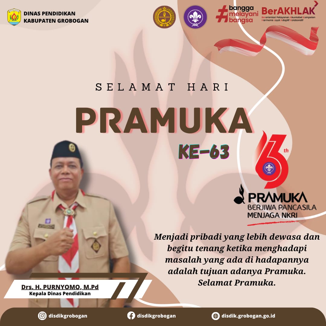 Hari Pramuka, yang diperingati tanggal 14 Agustus tiap tahunnya, pada tahun 2024 ini merupakan perinngatan Hari Pramuka Ke - 63. Gerakan Pramuka di Indonesia yang lahir pada tanggal 14 Agustus 1961. Lahirnya Gerakan Pramuka ditandai dengan serangkaian peristiwa yang saling berkaitan yaitu :