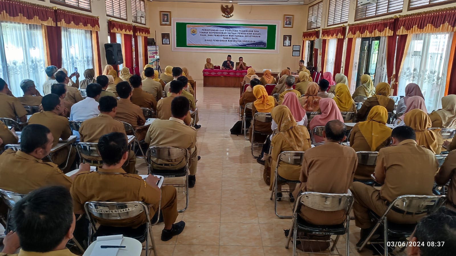 Hari ini Senin 3 Juni 2024 dilaksanakan desk perhitungan dan pemetaan pendidik dan tenaga kependidikan satuan Pendidikan Dasar, PAUD dan Pendidikan Non Formal/Kesetaraan Tahun 2024. Acara yang akan dilaksanakan menyeluruh di satuan pendidikan Kabupaten Grobogan selama 7 hari ini bertujuan untuk memetakan jumlah pendidik dan tenaga kependidikan baik Guru Kelas, PAI, PJOK baik dengan status ASN maupun Non ASN, yang sudah tercatat dalam Data Pokok Pendidikan (Dapodik) maupun belum. Hasil akhir dari desk ini digunakan untuk meredistribusi sekolah yang terdapat kelebihan guru ke sekolah yang kekurangan guru, selain itu hasilnya juga akan digunakan sebagai dasar usulan formasi PPPK.